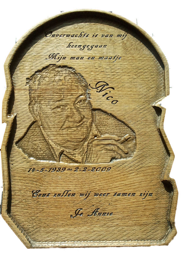 gegraveerd is op hout.
